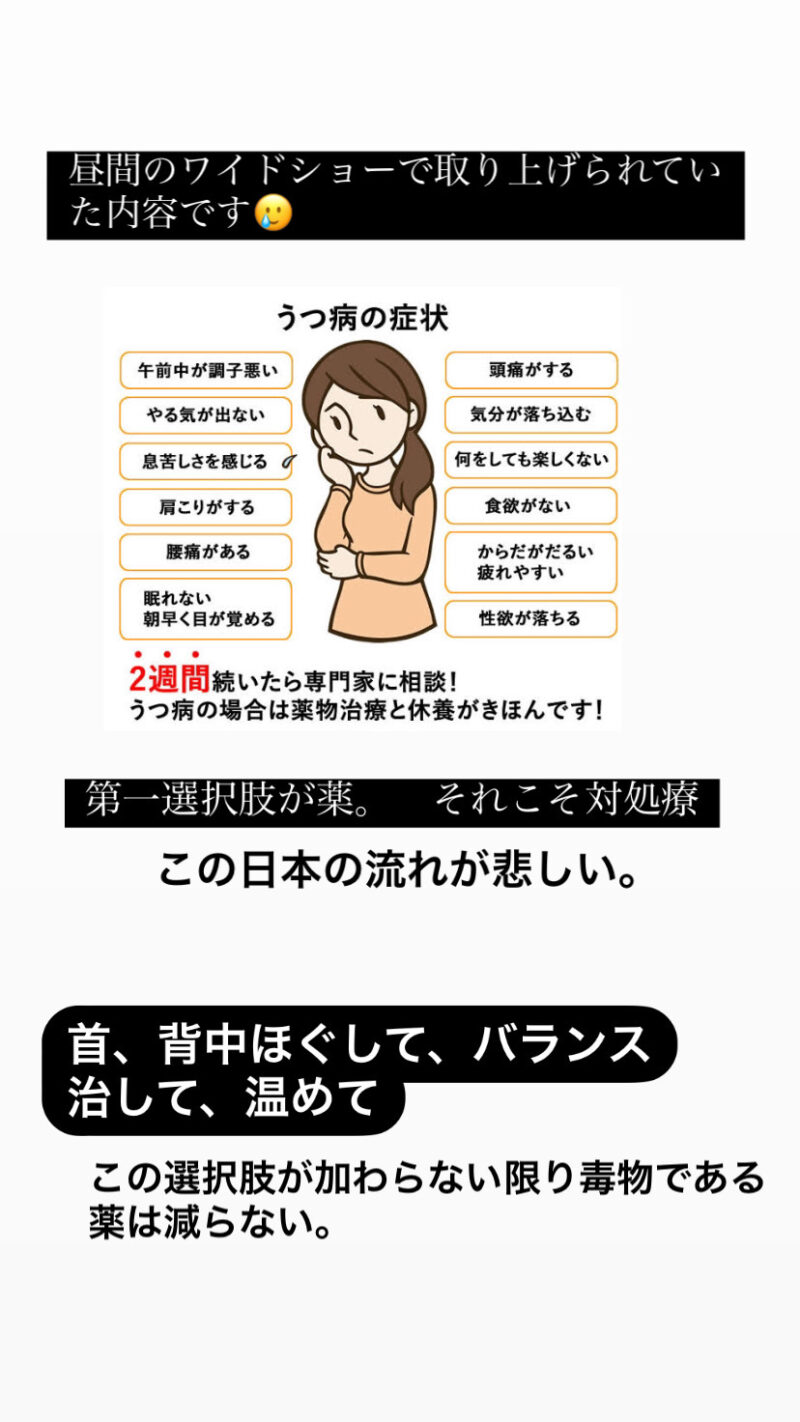 5月は五月病という言葉があるように精神的に不安定になるようです( ; ; ) [うつ]が2週間以上続いたら 心療内科で薬をもらうようにと。 そんな内容が先日見た昼間のワイドショーで流れていました。 この流れ、この道に先は…